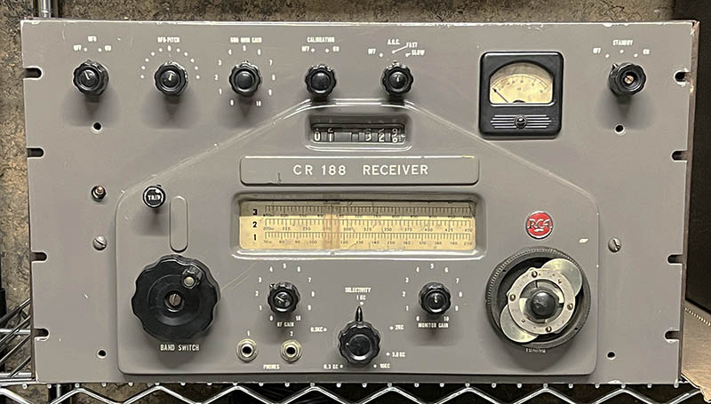 W3TA - CR-188 - SN: SAMPLE Tom found this receiver stored in the worst possible conditions,...inside an RV parked on a 13 acre property that had a multitude of derelict vehicles all parked in the brush and undergrowth and all containing various types of vintage and antique radios. These vehicles were Police buses, RVs, vans and with a few sea-going containers. Nothing was sealed and the radio gear inside all of these vehicles was just piled inside. All of the equipment was inspected after years of abandonment and 90% of the radios could only be considered scrap. Most of the salvageable gear was in "parts set" condition. Unfortunately, the extremely rare RCA CR-188 was among the abandoned gear, despite the fact that the owner had once traded a then two year old car for the radio. At that time, 20 years ago, the CR-188 was a functional receiver,...not any more. Tom saved the CR-188 and is still in the data acquiring mode with virtually no information since only five were built by RCA Montreal. The CR-188 was RCA Montreal's answer to the Collins 51J/R-388 receivers (according to the RCA Montreal flyer on the CR-188.) Sort of the the same permeability tuning using a slug-rack type of tuning although the rack moves something like opening a book rather than the vertical movement of the Collins slug racks. The CR-188 covered 70kc to 1000kc using four bands on the linear scale, then the remaining coverage of 1.000mc to 27.000mc used the Veeder-Root counter. Supposedly, a contract for these receivers was issued by the Spanish Navy but the contract was cancelled before the CR-188s could be produced. Technical difficulties were sited as one problem and certainly the numerous custom-built assemblies and large cast metal pieces drove the cost of manufacture into the stratosphere. Although five were actually built, RCA Montreal didn't go any further on the project. |