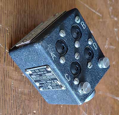 If the Pilot was incapacitated for some reason, then Operator could cut the safety wire on the LOCAL-REMOTE switch to allow placing the transmitter in LOCAL. Then the Operator could control the transmitter directly, but normal operation of the ATD was by the Pilot through the Pilot's Remote Control Unit Type CRR-23280 that was mounted to the right side of the Pilot's seat. The Remote had a channel selector knob, a large flat button-type of hand key for CW, a MIC input jack, a three-position PHONE/STANDBY-OFF-CODE toggle switch (turned the ATD "on") and a TRANSMIT indicator (this was a visual "pop-up" indicator so the Pilot would know that the ATD was powered since he didn't have direct visibility of the transmitter.) In addition to the Pilot's Remote Control Unit there was also a Remote Channel Indicator Unit Type CRR-55079 that was mounted in an easily visible area in the rear section of the cockpit. Depending on the aircraft installation, sometimes the ATD transmitter was mounted under the Pilot's seat facing aft (towards the Operator.) Depending on the Operator's seated position, sometimes the ATD panel wasn't totally visible. The Remote Channel Indicator allowed the Operator to see what channel the Pilot had selected. Although the Operator could use the transmitter, it was controlled by the Pilot as far as applying power, selecting mode of transmission and selecting the transmitting channel. The multitude of adjustments that were necessary for each of the four channels to operate properly made "pre-flight radio setup" a prerequisite. Since any significant frequency adjustment of any channel required removing that channel's individual Tuning Unit from the main frame for resetting four internal switches followed by retuning the transmitter, any readjustment of control settings during the flight wasn't practical and essentially couldn't be accomplished. The manual implies that neither the Pilot nor the Operator were necessarily "radiomen" but they could "operate" the transmitter within the limitations of the pre-flight setup. The fact that the REMOTE-LOCAL switch on the ATD was "safety-wired" to REMOTE implies the Operator in the airplane wasn't a trained radioman. The frequency selection of the four channels was motor-driven based on the position of the channel switch on either the transmitter or its remote. A chain-driven rotating "letter wheel" (on the ATD) would display which channel had been selected. The selection of a channel's tuning module was accomplished by the motor driving a gearbox that slowly rotated a shaft that had four cams. The four cams with "roller tips" on the shaft were spaced at 90º increments and would individually would push down a specific rectangular push-rod for each channel as the shaft slowly rotated. The push-rod had several metal pins (~.25" diameter) that would push down the movable selector contacts on the back of the selected Tuning Unit to connect the various frequency controlling circuits and the antenna matching circuits for the channel selected. Unselected channel contacts were grounded by way of the spring-loading of the contact arms contacting metal grounding pins. The motor-drive used a forward and a reverse winding that was timed to use just a momentary "reverse" connection to stop the motor after the forward winding was disconnected. This allowed precise position stopping at the selected channel with no "over-shoot." There was a manual channel select knob on the right side of the transmitter. If the handle of this knob was folded out, that disengaged the motor drive gearbox and the main shaft could then be rotated using this knob. When finished with the manual adjustment, the knob was folded back, "rocked" slightly and then the manual control being "spring-loaded" would "drop into position" to engage the motor drive gearbox and to be in the correct position displaying the correct channel. >>> |