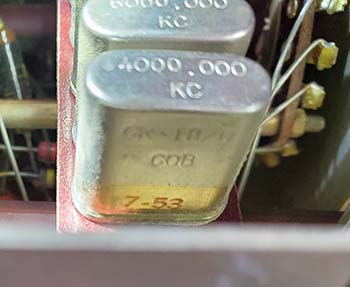 before that date. While I had thought that the Collins Mfg SN: 9108 on this R-388 was quite high, I assumed that the receiver was built in 1952 because of the lack of a Break-in Switch. All of that changed with a subsequent, more thorough inspection of this receiver. C223 is date coded 7-53, July 1953, and all of the crystals in the Crystal Oscillator are also date coded 7-53. The 100kc Calibration crystal is date coded 8-53. With the receiver being assembled sometime after August, 1953, now the Collins Mfg Number of 9108 seems chronologically more appropriate. Also, the PTO SN M6653 also fits into the "numbers" much better. But, why isn't there a Break-in Switch. These date codes seem to imply that the installation of the Break-in Switch, even though first found on 1953 contract R-388 receivers, must have started later than August, 1953. The Break-in Switch implementation is probably more accurately dated as late-1953. One has to keep in mind that the Order date on the data plate is just the "year that the order-contract was issued" and not a specific "day-month-year" indication. It could be early in a particular year or at the end of that year. Then there's always the time period between the order-contract issue-date and the actual building of the receivers, stocking them and then pulling from stock to fulfill the contract order. Also, it was common for one contract to be used for multiple orders. The upshot is, SN:9108 was built sometime after August 1953 and, if the data plate is original, it was used to fulfill a 1952 Order (contract) at least eight months later, that is, eight months after the contract had been issued. |
