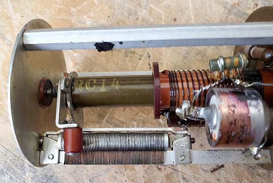 >>> Expecting any negative-pressure seal to last 70 years and maintain a vacuum is probably wishful-thinking. However, I've found several "C.R." PTOs that still have the hex plug sealed with green Loctite indicating that L002 was never accessed and the vacuum may have been preserved much longer than the typical "M" PTO. ALL of these CR-type of 70E-15 PTOs were easily adjusted for <1kc EPE just using L002. Evidence seems to indicate that field calibrations of the PTO followed by not returning the PTO to Collins for reworking is the primary cause for excessive EPE. As further evidence, I've also successfully calibrated a stock but "sealed" "M" PTO (SN:M6653) indicating that loss of vacuum and air-moisture ingression is the primary cause of uncorrectable EPE problems. Another scenario is that perhaps slight differences in construction and components between the "M" PTO and the "CR" PTO actually prevents the "CR" PTO EPE from ever increasing to the point where it can't be recalibrated just using L002. Photographic Evidence - A side-by-side comparison of the internal structure of a "M" and "CR" version provides some interesting speculation since there are virtually no differences that visually stand out. Here are some things noticed: 1. Ferrite core in the "C.R." PTO is identified as "RC 3 4" while the ferrite core in the "M" PTO has no identification. Both cores are dark olive green but this is usually just a coating of paint that protects the ferrite and prevents contact with the actual ferrite material (since it's conductive.) 2. Desiccant packs are installed in the "C.R." PTO but not in the "M" PTO. 3. Note the wide variability of the washer stack in the "M" PTO versus the almost flat washer stack in the "CR" PTO indicating that the "CR" ferrite material versus its position within the inductance is much more linear and perhaps a different permeability or mix of ferrite material. Conclusions - The most significant visual differences would be the desiccant packs in the "C.R." PTO and the fact that the ferrite core is identified in the "C.R" PTO. If the ferrite core is different in the "C.R" PTO (requiring identification) that would be a significant change that certainly could be the reason that the "C.R." can be easily calibrated just using L002. The ferrite material might also be responsible for the almost flat washer stack linearity adjustment. The lack of desiccant packs in the "M" PTO is a surprise since the earlier 70E-7A used in the 51J-1 and 51J-2 had a desiccant holder on top of the PTO. The difference was that the 70E-7A wasn't well-sealed where the 70E-15 was a sealed-vacuum environment. Speculation - The conclusion is that loss of vacuum due to field calibrations removing the hex-plug to access L002 resulted in air-moisture ingression. This was then followed by not returning the PTO to Collins for proper recalibration and sealing. The air-moisture contamination may have affected the ferrite causing it to change permeability to the point where L002 didn't have the range of adjustment necessary for calibration. These actions were probably responsible for most of the "M" PTO problems. The "C.R." PTOs found in 51J-4 receivers were not even calibrated very often and therefore the vacuum seal lasted much longer. Additionally, desiccant packs probably absorbed moisture ingression as the PTO seals aged. Perhaps a different type of ferrite, RC34, was less affected by the loss of vacuum and air-moisture ingression. The upshot is, expect nearly all early 70E-15"M" PTOs to be difficult or even impossible to calibrate while the 70E-15"CR" usually calibrates easily just using L002. Note in the photos below, the ferrite cores in the 51J-3 PTO and in the R-388 SN:9108 PTO are identified as "RC7." The ferrite core in M9145 is identified as "RC14." |