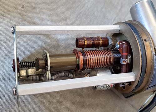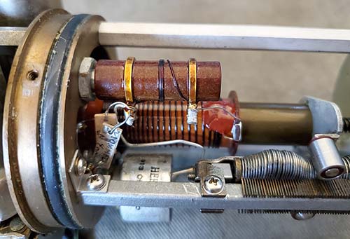 >>> Expecting any negative-pressure seal to last 70 years and maintain a vacuum is probably wishful-thinking. However, I've found several "C.R." PTOs that still have the hex plug sealed with green Loctite indicating that L002 was never accessed and the vacuum may have been preserved much longer than the typical "M" PTO. ALL of these CR-type of 70E-15 PTOs were easily adjusted for <1kc EPE just using L002. Evidence seems to indicate that field calibrations of the PTO followed by not returning the PTO to Collins for reworking is the primary cause for excessive EPE. That could happen to a 51J-4,...but not very often. Another scenario is that perhaps slight differences in construction and components between the "M" PTO and the "CR" PTO actually prevents the "CR" PTO EPE from ever increasing to the point where it can't be recalibrated just using L002. Photographic Evidence - A side-by-side comparison of the internal structure of a "M" and "CR" version provides some interesting speculation since there are virtually no differences that visually stand out. Here are some things noticed: 1. Ferrite core in the "C.R." PTO is identified as "RC 3 4" while the ferrite core in the "M" PTO has no identification. Both cores are dark olive green but this is usually just a coating of paint that protects the ferrite and prevents contact with the actual ferrite material (since it's conductive.) 2. Desiccant packs are installed in the "C.R." PTO but not in the "M" PTO. 3. Note the wide variability of the washer stack in the "M" PTO versus the almost flat washer stack in the "CR" PTO indicating that the "CR" ferrite material versus its position within the inductance is much more linear and perhaps a different permeability or mix of ferrite material. Conclusions - The most significant visual differences would be the desiccant packs in the "C.R." PTO and the fact that the ferrite core is identified in the "C.R" PTO. If the ferrite core is different in the "C.R" PTO (requiring identification) that would be a significant change that certainly could be the reason that the "C.R." can be easily calibrated just using L002. The ferrite material might also be responsible for the almost flat washer stack linearity adjustment. The lack of desiccant packs in the "M" PTO is a surprise since the earlier 70E-7A used in the 51J-1 and 51J-2 had a desiccant holder on top of the PTO. The difference was that the 70E-7A wasn't sealed where the 70E-15 was a sealed-vacuum environment. Speculation - The conclusion is that loss of vacuum due to field calibrations removing the hex-plug to access L002 resulted in air-moisture ingression. This was then followed by not returning the PTO to Collins for proper recalibration and sealing. The air-moisture contamination may have affected the ferrite causing it to change permeability to the point where L002 didn't have the range of adjustment necessary for calibration. These actions were probably responsible for the "M" PTO problems. The "C.R." PTOs found in 51J-4 receivers were not even calibrated very often and therefore the vacuum seal lasted much longer. Additionally, desiccant packs absorbed moisture ingression as the PTO seals aged. Perhaps a different type of ferrite, RC34, was less affected by the loss of vacuum and air-moisture ingression. The upshot is, expect early 70E-15"M" PTOs to be difficult to calibrate while the 70E-15"CR" usually calibrates easily just using L002. |