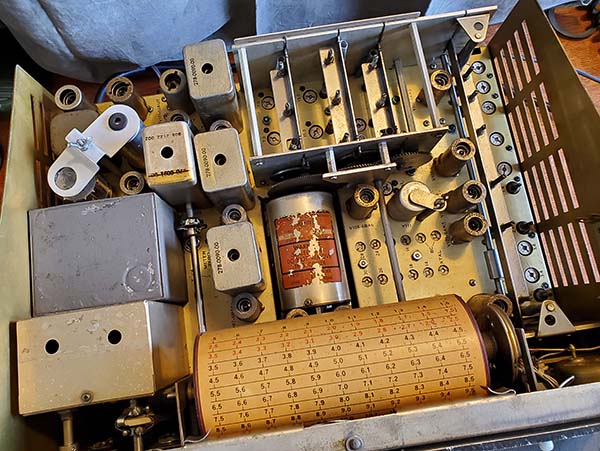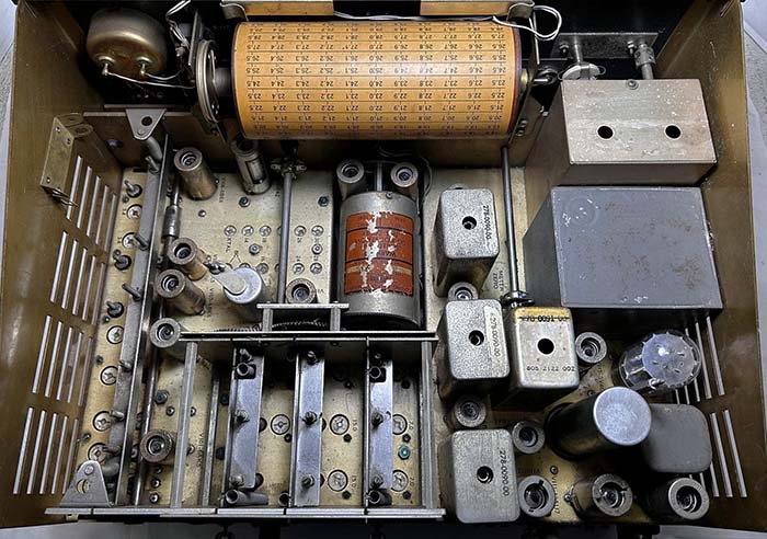 Usually, a long warm-up time indicates a few to many weak tubes so the first thing to do was to test all of the tubes. All of the tubes tested very good BUT in the Mechanical Filter assembly one 6BA6 position actually had a 12BA6 installed. No wonder it took a long time to warm up. I momentarily thought the 12BA6 in the MF IF amplifier might have been some type of mod. Something like "install a low gain tube for reduced distortion" but I think it's more likely that was the closest "BA6" tube a former owner could find. With all good condition tubes, SN:4723 had much better sensitivity. I set the zero on the CL meter and could just get about a 10db increase by tuning in WWV, so sensitivity is not up to spec, yet. But, the Calibrator signal will drive the CL meter up to +60db so the problem might be the limitations of using a Pixel Loop antenna indoors (heavy wet snow took down my 135' Inv-vee Tuned antenna.) There wasn't any change in the audio quality, so I'm pretty sure the 12BA6 was installed because that was the only "BA6" easily available (out of the junk box?) >>> |