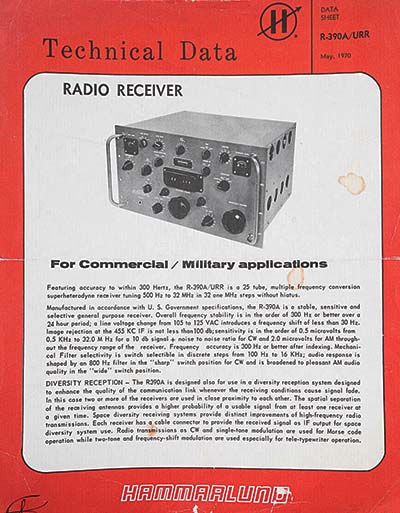 Left: This is the first page of a two page flyer showing EAC/Hammarlund promoting the R-390A for "Commercial/Military" Applications in 1970