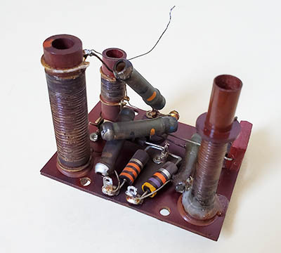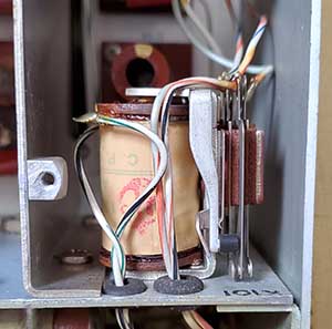 A thorough inspection did turn up this Anchor ink-stamp, probably USN approval for the component itself. I've seen this stamp on almost all of the Break-in Relays, so I think it was the result of a component inspection and approval to allow Collins to put the relays into their stock "ready to use." |