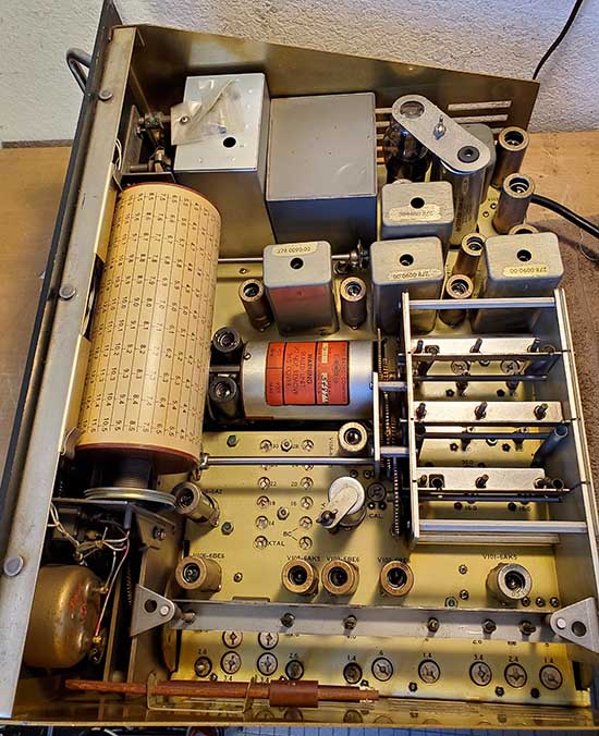 V102 - 6BE6 - 1st Mixer - 37/36 - At minimum acceptable V105 - 6AK5 - Crystal Osc - 22/22 - At minimum acceptable V106 - 6BE6 - 2nd Mixer - 24/36 - weak ~ 33% below minimum acceptable V110 - 12AX7 - Det/AVC Rect - 20/42 and 15/42 - both triodes weak and ~ 50% below minimum acceptable V111 - 12AU7 - AVC/IF Output - 60/52 and 100/52 - unbalanced for some reason. Replaced as a problem-preventive measure. The other 13 tubes all tested significantly above (>50%) minimum acceptable. None of the tubes were "bad" - that is, open heater, shorted or no emission - just weak being at or below minimum acceptable on the TV-7. Having all of the tubes being NOS or testing like NOS assures that the receiver will align correctly and perform well. Tube testers aren't the final word however. A Mutual Conductance tester, like the TV-7, will test the tube at 60hz and at voltages that aren't anything like how the receiver's tube circuit is designed. The tube working correctly in the receiver is the final test. |