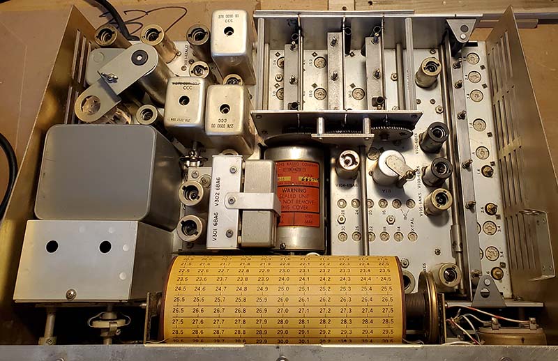 I found this pencil note under the top cover about where the center wing-nut notch is. An unexpected notation and one that adds slightly to the concerns about the correct identification of the receiver. Of course, it's not a Collins-official notation. It might have been an erroneous assumption made from referencing the schematic title. Unofficial notations maybe interesting but can't be relied upon as accurate information.