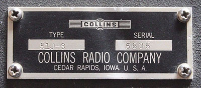 the terminal strips, left to right, are ANTENNA, REMOTE and AUDIO. The 51J-2 was built through all of 1950 and was replaced with the introduction of the military R-388 and the civilian 51J-3 towards the end of 1950. When the military ordered both 51J-1 and 51J-2 receivers they were designated as the R-381/URR for the 51J-1 and R-381A/URR for the 51J-2. Some 51J-1 and 51J-2 receivers will be found without the Collins' Winged Emblem mounted on the front panel but the receiver panel will be drilled for installation of a data plate, which, of course, is nearly always missing. The implication is that civilian 51J-2 receivers had the Collins WE while the R-381A versions had a military data plate installed instead. This also applies to the 51J-1 versus the R-381/URR military versions of that receiver. There are indications in Collins manuals and other documentation that the 51J-1 and 51J-2 did carry serial numbers, however, I've never seen (with just an "eyeball-only" visual check) a serial number in the location provided on the rear chassis apron (or anywhere else on the receiver.) All examples I've inspected of both the 51J-1 and the 51J-2 receivers always are missing the serial number. Collins used "ink-stamped" numbers in their production and the serial number was ink-stamped using water-soluble ink. Excessive cleaning and possibly even humid environments have deteriorated any of the serial numbers to the point of "invisibility." However, using UV light and a Photoshop computer program it is sometimes possible to find traces of the original ink-stamping and retrieve the serial number. Even though the 51J-2 production only lasted for about one year, it's evident that in that short time, several times as many 51J-2 receivers were produced than the total quantity of 51J-1 receivers produced from mid-1948 up into early 1950. |