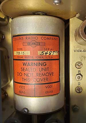 receiver is taken out of the cabinet. See the Collins' catalog artwork