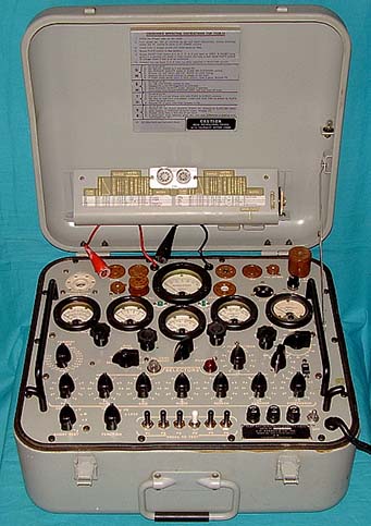 Mutual Conductance Tube Testers - The military TV-7 is an excellent, compact, accurate and easy to use gm-type tester that has become the "standard" by which many eBay professional tube sellers test their tubes and provide accurate testing data to potential buyers. Since the TV-7 is the "standard," most prospective tube buyers know what the test data provided means. Unfortunately, since the TV-7 has become the "standard," it has become very, very, very expensive these days. The TV-7 is an excellent tube tester but it's not the only good one. There are several other Hickok tube testers that work the same way as the TV-7 to measure the tube's mutual conductance. Many of the TV service industry-type of Hickoks do sell for much less than the TV-7 and use exactly the same circuit. Hickok 600, or the 6000, the Hickok 534 and many other Hickok testers were produced for TV repairmen that are all gm-type testers and sell for much less than a TV-7. Additionally, these testers mentioned have the option for the user to select "English Scale" with "Good-?-Bad" scaling or the user can select the scaling in mutual conductance (usually 3000gm, 6000gm and 15,000gm full scale ranges.) So, the TV-7 isn't the only good tube tester around, there are several other options that are much more reasonably priced. Due to the popular renown of the TV-7 it will often sell for double the price of the really nice and beautiful (besides accurate and versatile) TV-2 tube tester. With the TV-2, all parameters of the tube voltages and signal levels can be adjusted for custom tube testing set-ups. You can use any RCA Tube Manual to set up the TV-2 to test the just about any tube from the information provided in that manual. Using the TV-2's SIX meters you can monitor the test set up parameters for the tube under test. However, expect testing a set of tubes from a R-390A to take at least TWICE AS LONG (and probably a lot longer) when using a TV-2 as compared to the "quick to set up and easy to use" TV-7. But the TV-2 is still an ultra-cool tube tester that's almost always under-priced. The only caveat,...if you're in a hurry to do the tube testing, stick with the TV-7. The TV-2 is a great tube tester but a real "time hog." |